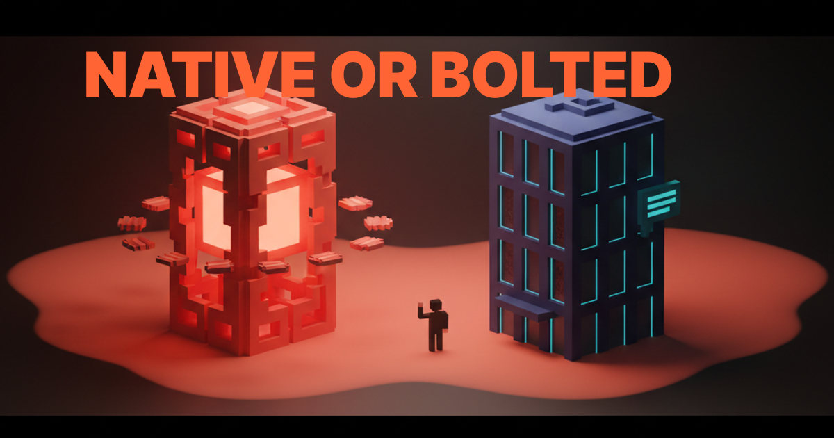 The AI-native version of the same product would have rebuilt the primary workflow around the model. The dashboard becomes a prompt. The form becomes a conversation. The export becomes a generation. The model is no longer something you can ignore, it is the surface itself. That is a much harder product to ship, which is why most teams settle for the bolt-on.